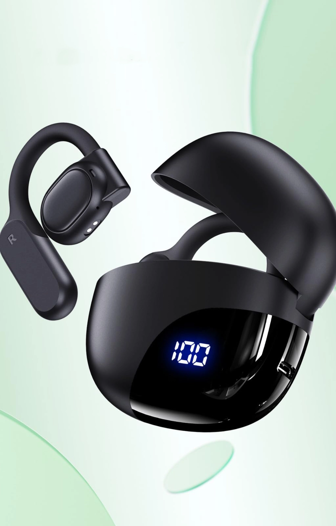 TAGRY open-ear wireless earbuds with ergonomic earhooks, 40H playtime, fast charging, and digital display. IPX7 waterproof design, perfect for running, workout, and sports.