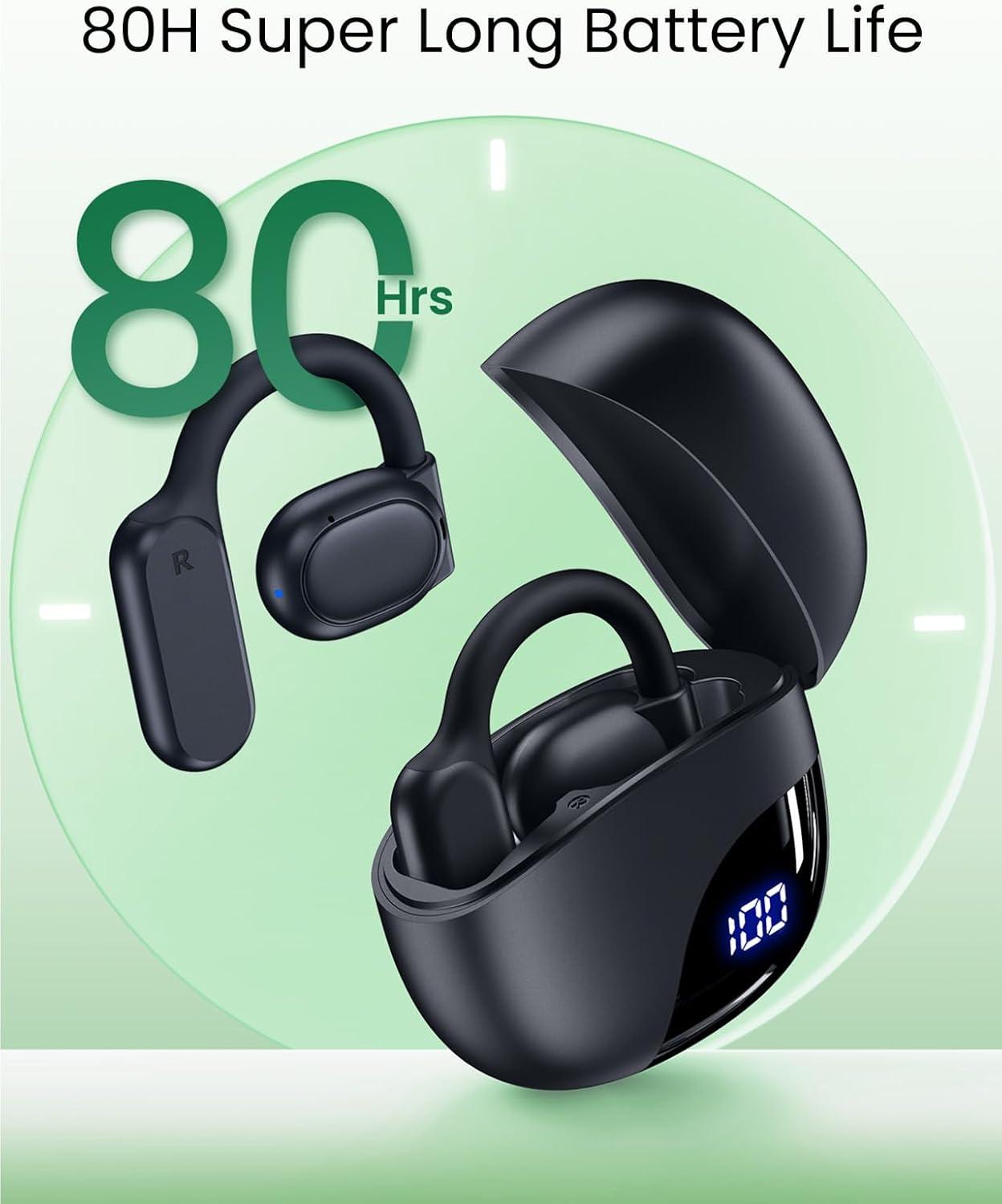 4.Long Battery Life for Extended Listening: With a total of 80 hours of listening time, including 13.5 hours of continuous use on a single charge, K08 open earphones are perfect for long listening sessions.
